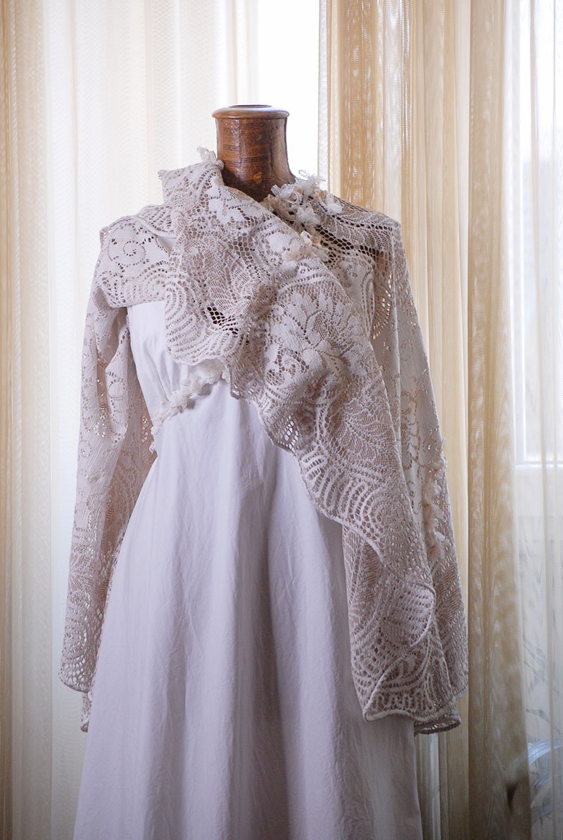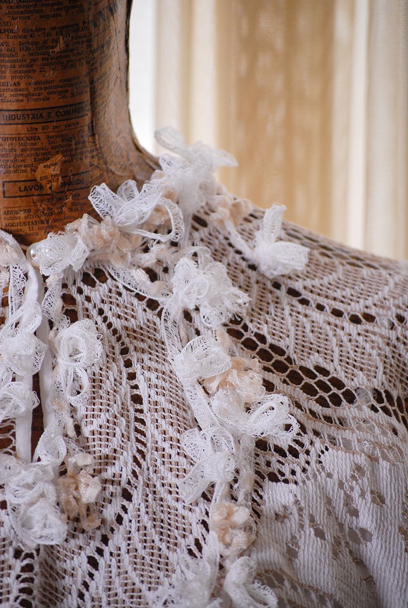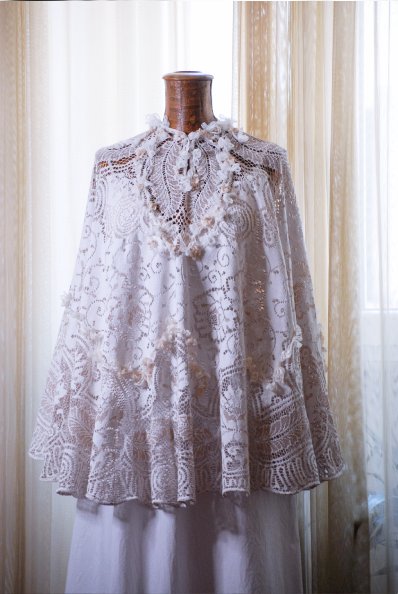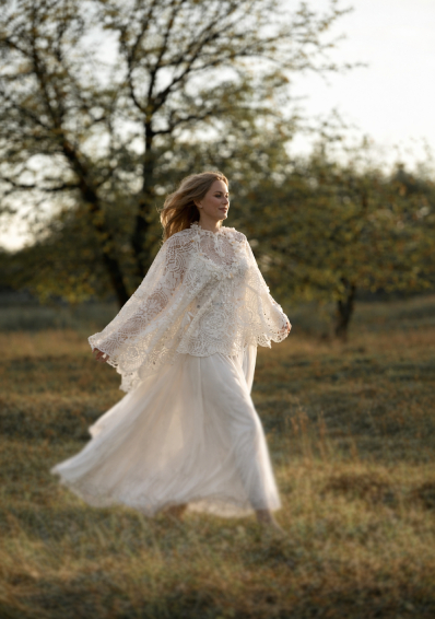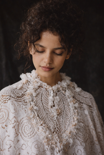 Indossare un romanticissimo poncho, è una scelta particolare in stile boho style. Nato da un recupero vintage, quindi unico, si trasforma con deliziosi ricami a fiorellini, che si ritrovano anche sull’abito a sottoveste [regolabile] in cotone Tulipe. Un insieme confortevole, facile ed innovativo.