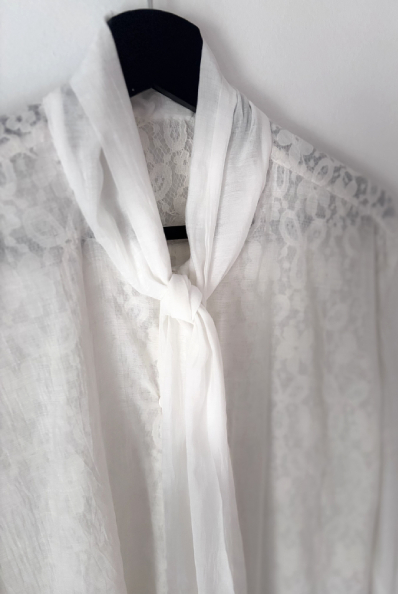 22-23-24-la camicia unisex Soffio con collo a fiocco e rosa di organza.